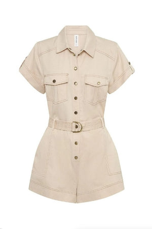 The Gianna Playsuit is a feminine take on utility in an ivory hue. Crafted from a cotton-tencel blend, the Gianna playsuit features a button through front, front patch pockets, classic collar and a removable signature D-Ring belt.