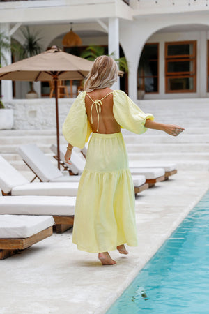 A stunning backless linen top with tie strap to prevent the slip. Elastic surrounds to hold in place, with enough puff in the body to make sure the girls aren't visible. There's a reason we've never had a return of this piece, because it's the backless top - for women who say they can't wear backless tops.