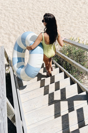 Ever wished for more sophisticated, timeless floats? The Petites Pommes Nordic Blue Anna ring does a perfectly tasteful job at providing entertainment and adding a pretty, yet subtle accessory to children’s resort. In a sober faded blue tone, it adds a fresh breeze to whites, neutrals and marines, and is also beautifully combined with orange, dark greens, and browns. As the brand says - don't let big logos and giant flamingos distract you from precious moments and beautiful scenery!