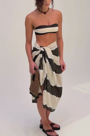 Lightweight, sheer, and endlessly versatile, this piece can be styled as a long skirt, mini skirt, or halter dress—perfect as an effortless layer over swimwear. Finished with a hand-painted tie-dye print, it’s designed for beach days, resort wear, and easy layering.
