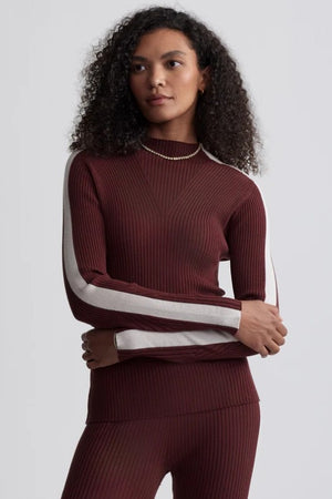 Ideal for après-ski layering, this mock neck knit is a winter wardrobe staple. Elevate your alpine style with the Wilshire knit. Designed in a regular fit with a chic mock neck, it features contrast panelling along the sleeves for a refined touch of detail. Pair with the coordinating Aiden leggings to complete the look.