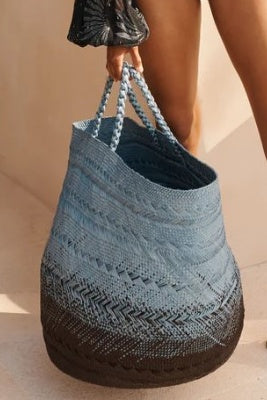 Oversized ombre straw bag made by sustainable manufacturing processes. Our materials and manufacturing are sustainably certified with a mindful consciousness of responsible practises. We always ensure full traceability of the supply chain.