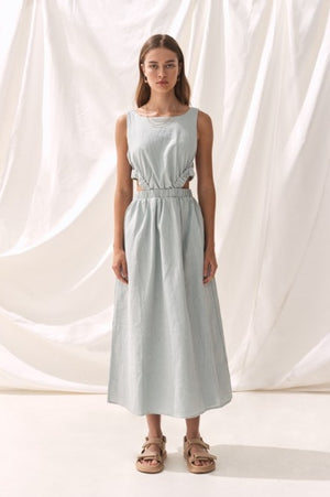 Perfect for those elevated events the Anzola Dress is a new season favourite. The high neckline is elegantly contrasted by an open back with ruched elasticised strap cut out detail. The waisted skirt skims in all the right places and falls perfectly at the mid-calf. Also featuring in-seam pockets and the fit is perfection with the elasticised straps.