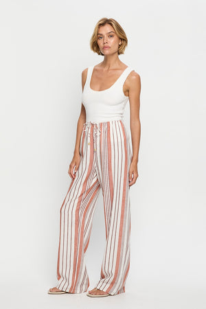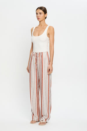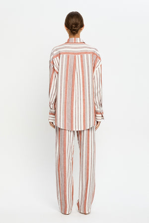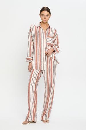 The Elms Trousers in Rust/Ivory is an oversized fit crafted in a breathable linen, bamboo blended fabric.