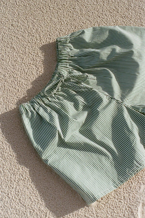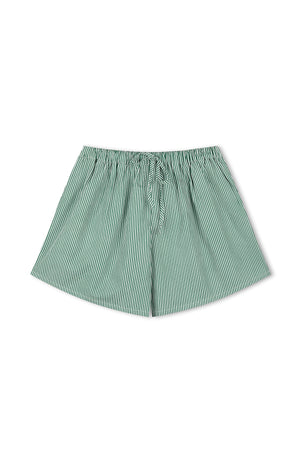 The Tallow Pin Stripe Cotton Shorts features a timeless green pinstripe design in a relaxed, boxy silhouette. Featuring an elastic waistband with a functional drawcord and pockets, they ensure a comfortable, relaxed fit. For a coordinated look, pair them with the Tallow Pin Stripe Cotton Shirt.
