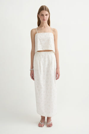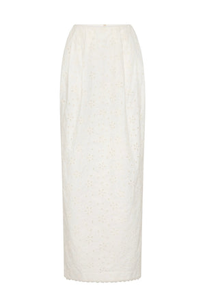 Crafted from embroidered cotton with delicate lace trim detailing, The Salma Skirt is designed to sit on the high-rise waist. Featuring pleated tuck details that fall to a midi length, style yours as a set with the Salma Top.
