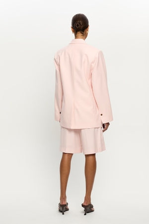 The Delany Blazer is an oversized tailored silhouette, crafted from a premium wool blend with a breathable finish for all-day comfort. Designed with a statement button closure and front jett pockets, the piece is complete with a hidden elastic within the sleeve lining, allowing for effortless styling — wear the sleeves pushed up for relaxed ease or left long for a more polished look. Style with the matching Delany Shorts for a modern, coordinated set.