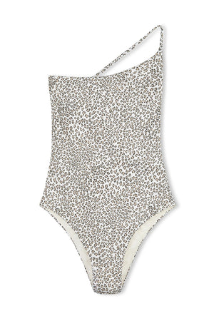The Micro Leopard One Piece features a sleek asymmetrical neckline with a single shoulder strap and a horizontal back detail, offering full brief coverage with a contemporary edge. Designed in a print reminiscent of early ZZ collections, this versatile piece transitions effortlessly from swimwear to bodysuit. Wear with the Micro Leopard Trouser.