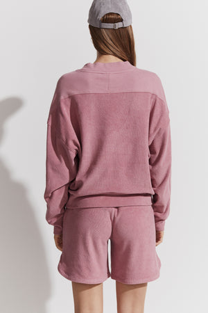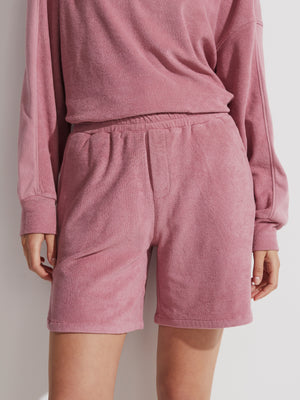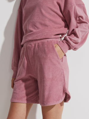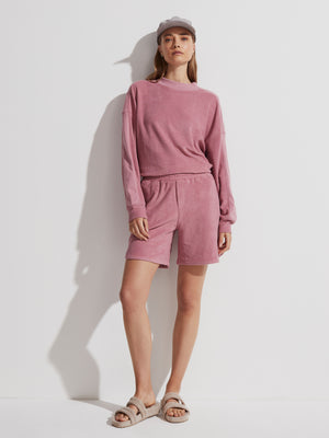 We claim this to be the perfect short for summer! Made in a light weight, towelling fabric, the shape is relaxed, with an elasticated waist for easy wearing. The gorgeous Mero shade is perfect to add warmth to skin tones and compliments the summer sun. The Mettler can be worn alone or paired with the Lyle Top to make a set. Perfect for post beach layering over swimwear as well as day to day.