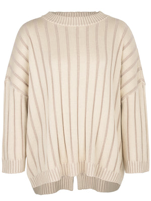 the cosy and oversized Jolanda Knit Jumper is the everyday classic from SANCIA. The simple slouch style knit with crew neckline and loose fit is a piece that will remain a tran-seasonal wardrobe staple along with the Venezia Knit Skirt. The back features a small split detail and the wide rib is highlighted in tonal colours. A practical shape with a tonne of cool-girl ease.