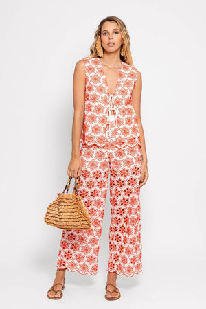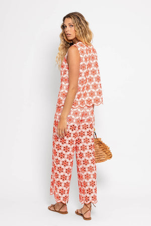 Made in embroidered fabric on which details are highlighted by sequins, Bao top is a shift top without sleeve. Spaghetti links prettily adorned the top and allow you to adjust it according to your mood. Opt for the total look with Lupy pant
