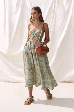 We love the feminine yet modern appeal of the Alessa Dress. Featuring a twist front sweetheart neckline and small cut-out on the front, the back has a lovely lace up detail, allowing for fully adjustable straps. The waist is elasticised for an easy fit. Also featuring side seam pockets on the fluid skirt, it sits at a lovely low calf level.