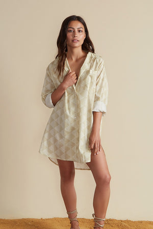 The Dunes shirt dress is a relaxed fitting, beachside staple. Crafted from lightweight cotton, wear buttoned up or open over swimwear.