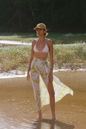 Where it all began. A perfect square of lightweight organic cotton, versatile for all your over-swim needs. Our signature piece—the Square pareo can be tied as a mini or midi length beach cover-up, or folded into quarters and used for a myriad of purposes as a smaller square scarf.