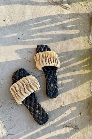 This stunning flat sandal features ruched and pleated hessian uppers which work beautifully against the contrasting, quilted insoles with exposed stitching. Meet the Audrey 2.0. The sandal that will be venturing everywhere with you throughout the summer, wherever you are!