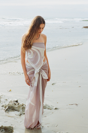 Where it all began. A perfect square of lightweight organic cotton, versatile for all your over-swim needs. Our signature piece—the Square Pareo can be tied as a mini or midi length beach cover-up. Wear with swimwear or the matching Lotus Scarf Top.