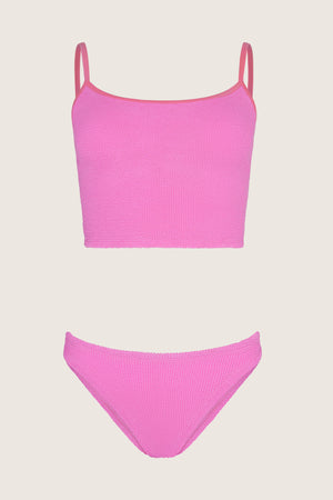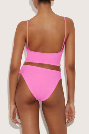 Care: After swimming, ensure you hand wash and thoroughly rinse your swimwear with cold water. Do not tumble-dry, air drying is best. Avoid wearing your Hunza G in jacuzzis, saunas, steam rooms, and hot springs, as the extreme temperatures can damage the material, colour