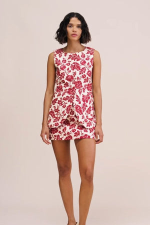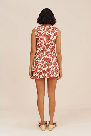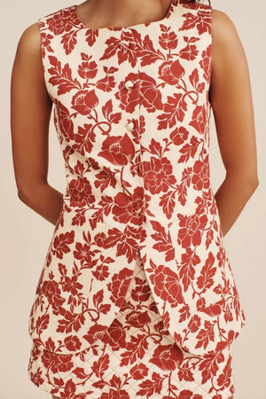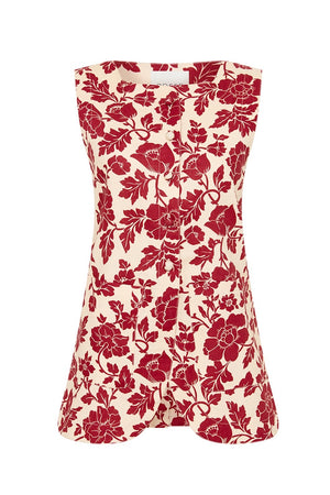 Adorned with an exclusive, vintage-inspired POSSE print, the Romeo Vest is cut from midweight linen and is designed for a close fit. It features an elegant high neckline, self-covered centre-front buttons and a peplum hem. The back turns to reveal and adjustable buckle and subtle split to allow for movement.