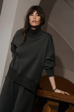 This essential sweatshirt in our DoubleSoft® fabric boasts an oversized fit and modern high-neck design. Complete with knitted cuffs, neck, and hem, it includes deep side splits for enhanced movement and style.