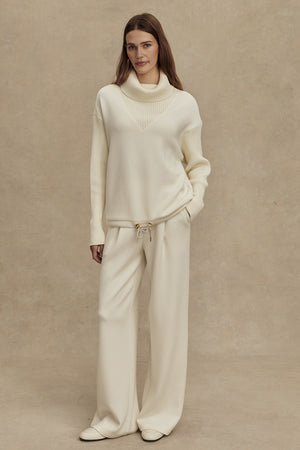 Combining comfort and elegance, the Hannah sweatshirt is Made with a DoubleSoft® body and a knitted cowl neck and sleeves. Featuring dropped shoulders for a relaxed, oversized fit and a drawcord at the hem for customizable styling. Elegant and contemporary, it’s a go-to wardrobe staple.