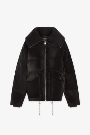 This oversized down-filled puffer is an elegant outer layer for fall and beyond.