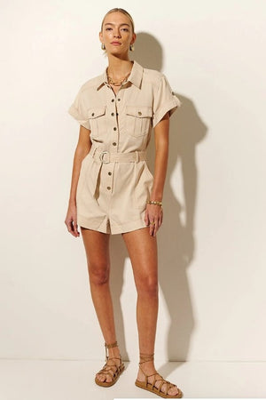 The Gianna Playsuit is a feminine take on utility in an ivory hue. Crafted from a cotton-tencel blend, the Gianna playsuit features a button through front, front patch pockets, classic collar and a removable signature D-Ring belt.