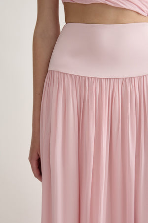 The Solene Skirt features a contrasting waistband and is designed to sit high on the waist. Cut with a gathered skirt to create floaty volume, it falls to a dramatic maxi length. Style yours as a set with the Solene Top.
