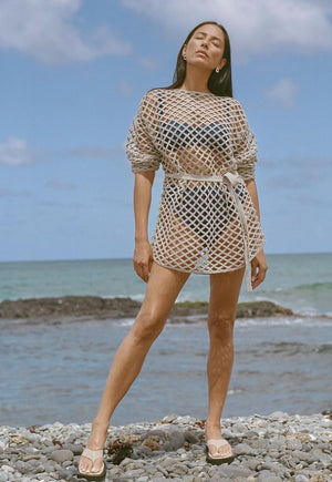 The Husk Lattice Knit Tunic Top is crafted with a custom-knitted lattice stitch for a unique, textured design. Featuring a relaxed silhouette and long sleeves, it’s effortlessly stylish and breathable. A separate tie is included, allowing for versatile styling options to suit your look. Perfect as a statement layer or a chic beach cover-up.