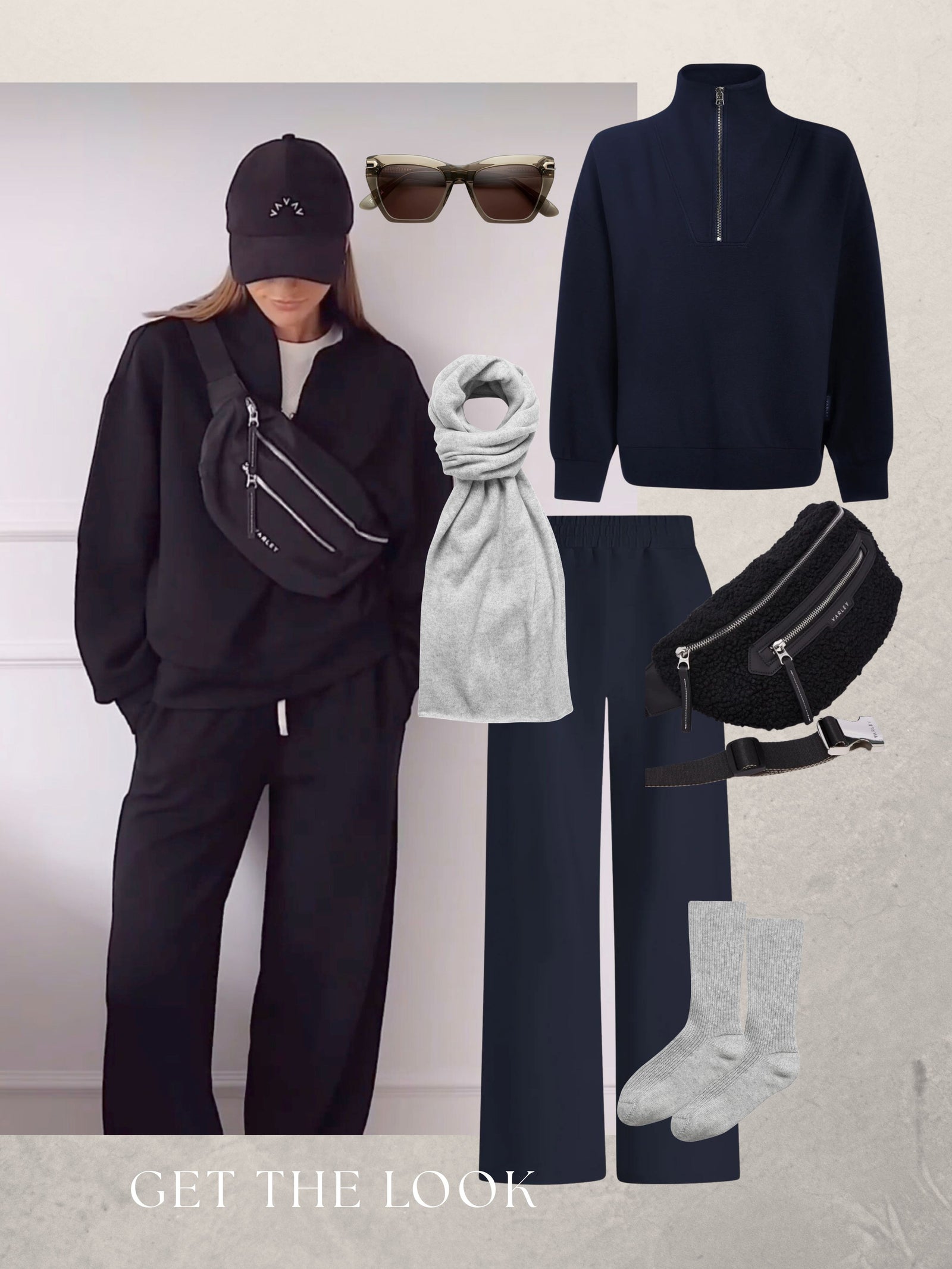 When you need to get that balance of travelling smart with ultimate comfort, there's nothing better to wear than the Varley Double Soft Hawley Sweater and Wide Leg Trousers in Navy. Layer up with cashmereand a chic belt bag for an effortlessly cool outfIt.