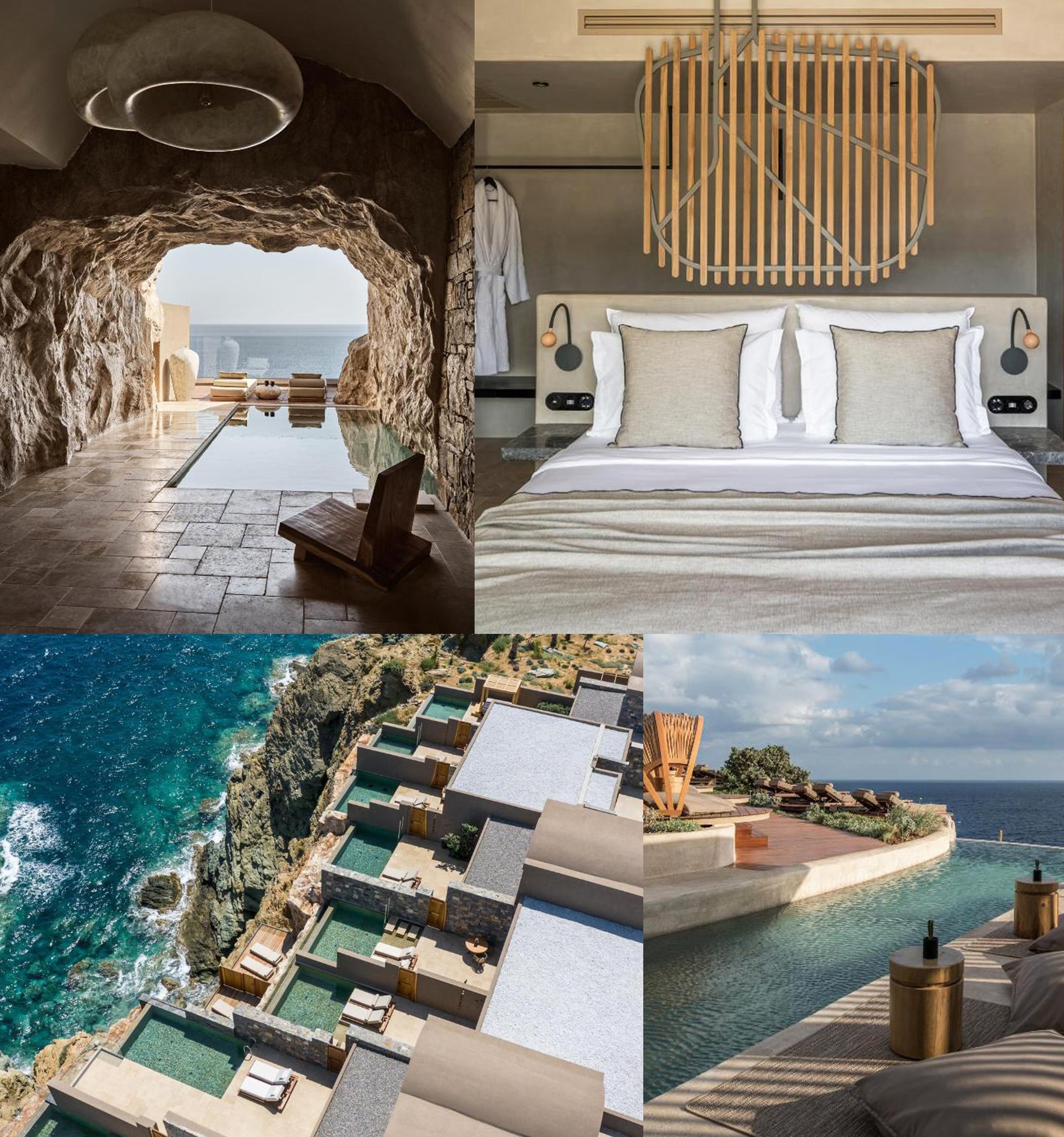 Perched dramatically above Mononaftis Bay, Acro Suites is a breath of luxe air for design-loving travellers. With just 49 cliff-side suites, villas, and lofts—each with sweeping Aegean views and private plunge pools. The architecture is quietly dramatic: stone, rough-hewn marble, and unrefined woods meld into the rocky terrain, while interiors speak of plush comfort (think Nespresso, Marshall speakers, sumptuous mattresses) meet natural authenticity.