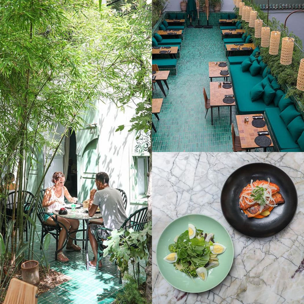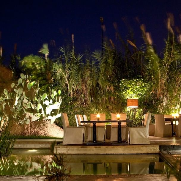 Guests can eat outside amongst the gardens or in one of the Moroccan lounges, where you can dine in privacy in the heart of Marrakech.