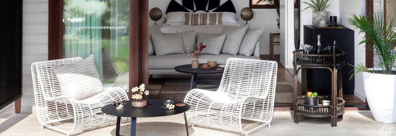 Suites feature floor-to-ceiling windows, rain water showers, hand-selected vintage and contemporary artworks and designer furniture. Finished with luxurious rugs, crisp linens and plush towels. A chic palette of black, white and grey tones, paired with polished floors, run throughout, accentuated by surrounding lush green palms in every corner.