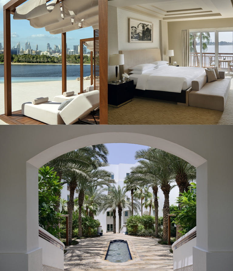 This idyllic resort is on the banks of the Dubai Creek and although just 10 minutes away from Dubai’s bustling downtown area, the hotel is an unexpected calming oasis amongst the city skyscrapers. The hotel’s low-rise, white washed buildings with blue domes and bougainvillea-draped walls are juxtaposed with mashrabiya patterned woodwork and desert hues –the Mediterranean and Moorish influences soothing, and unlike Dubai’s usual high-octane glamour. There are no beaches in this area, but the hotel has their own man-made stretch – a 100-meter infinity lagoon with glistering waters and pristine white sands. Lush tropical gardens and a beautiful pool bordered with palm trees make the perfect spot to recharge your batteries after a busy day of tourism. For those that cannot abide the madness of the city, there is no need to leave. The hotel is a hidden gem offering pure escapism – be sure to visit the Amara Spa set amidst the calm of private courtyards. The waterfront dining promenade has spectacular views and there’s al fresco dining options from French to Thai, so you can indulge in a different restaurant each day of your stay.