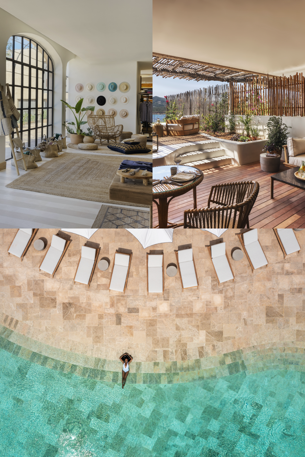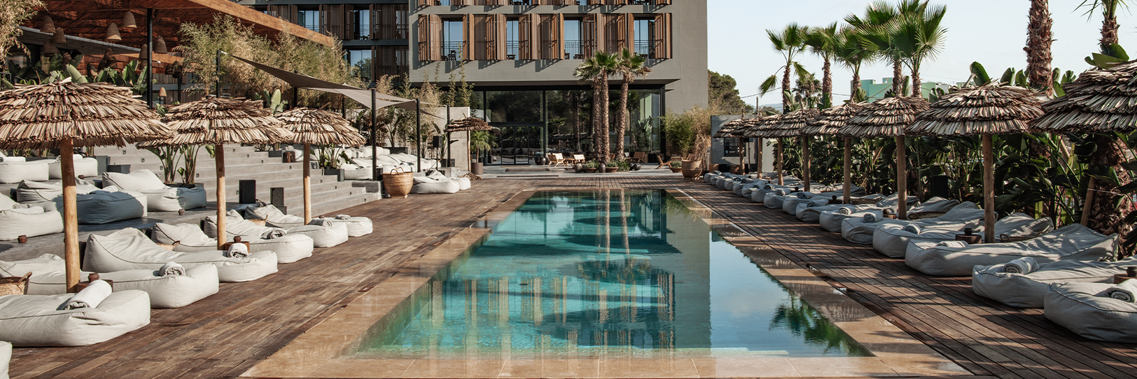 Located in the hills near Cala Gracio bay, the laid-back OKU Ibiza has taken residence in 2021. Here, design has moved away from the all-white aesthetic traditionally known in Ibiza, in favour of earthy, neutral tones, with uses of wood cladding and concrete to reflect the natural materials and simplicity of beach living. Rooms include penthouse suites, swim to rooms and a 4 bedroom villa for exclusive hire. With impressive views all round, OKU houses one of the largest pools on the island as its grand centre piece.