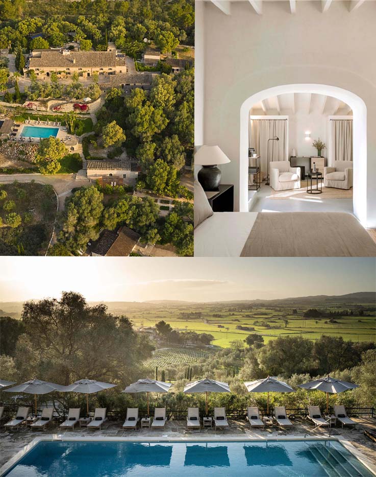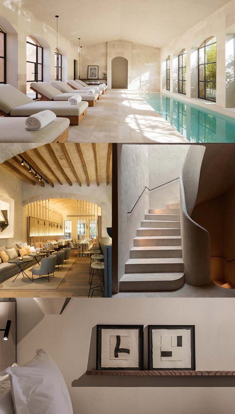 Why we love it? One of Ana’s favourite boutique hotels is Can Ferrereta, and we have to agree! Tucked away in the rural town of Santanyi, this 17th-century grand mansion has been turned into a 5-star boutique hotel offering guests a sensational space to unwind. Natural light fills large areas where contemporary architecture meets the buildings rustic roots. Exposed beams, stone archways and curved walls in calming shades create a peaceful atmosphere throughout. While a carefully curated collection of modern Spanish art splashes colour throughout.