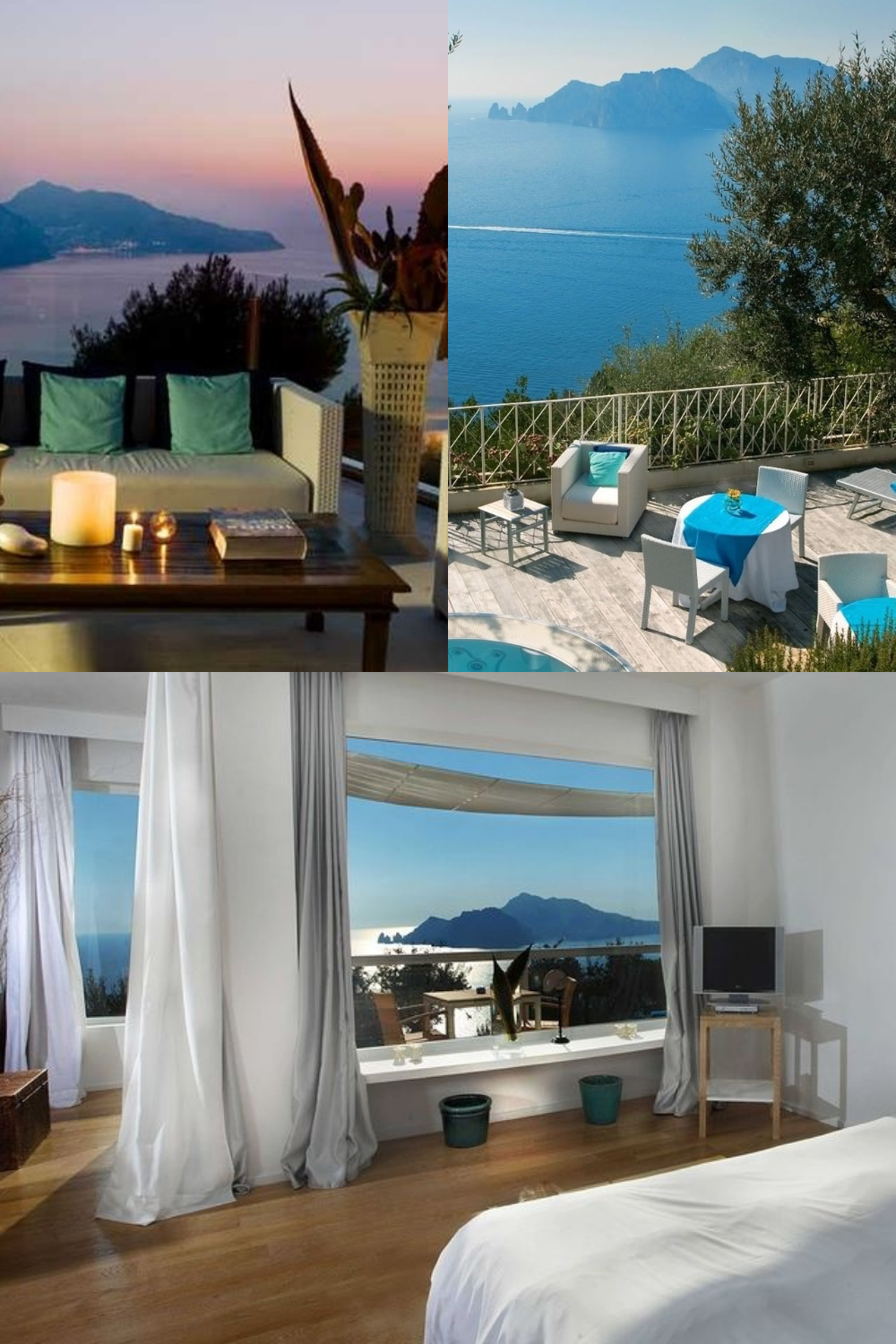 The Décor is grand, with ancient columns, original Neapolitan paintings and an alfresco area close to an infinity pool which is seemingly suspended between sea and sky. Here, the pool restaurant serves informal lunches and drinks, while inside the Belvedere restaurant offers an elegant dining experience which spills out over a sun-drenched terrace.