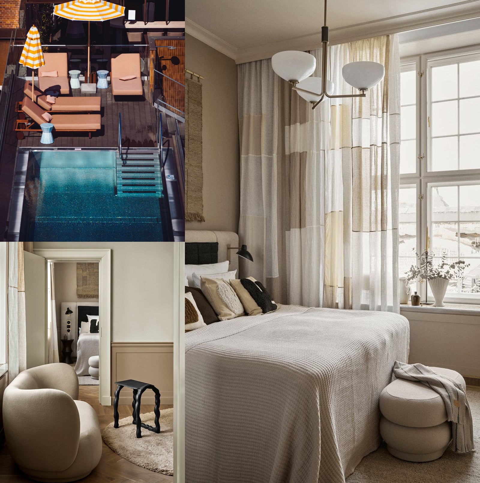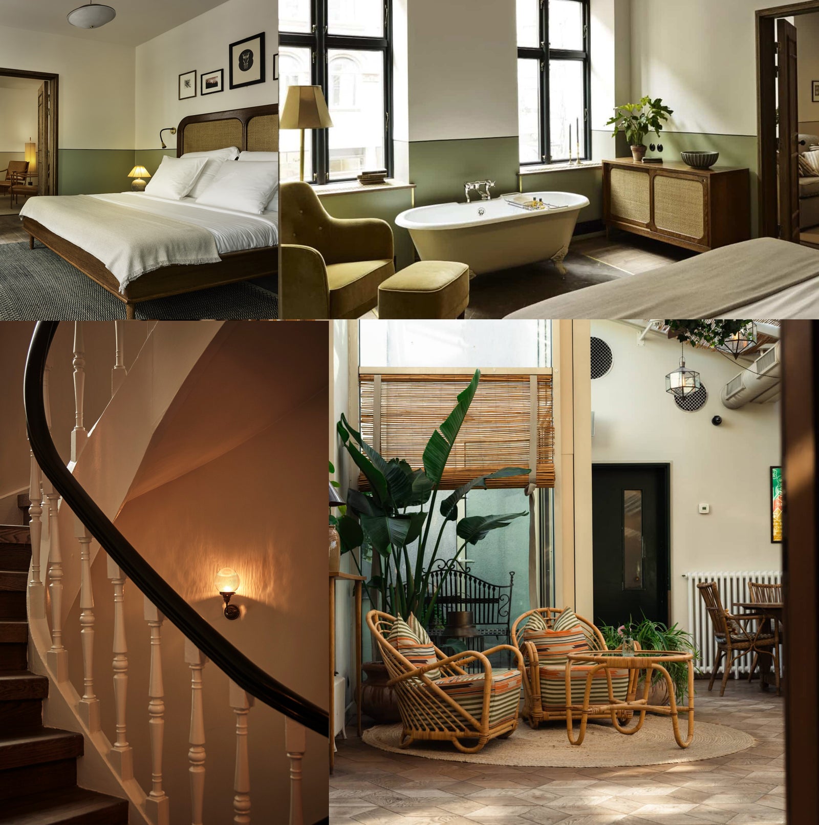 apartment—only infinitely more glamorous. Nestled on a serene cobblestone street behind the Royal Theatre, this former Opera Hotel has been transformed into a boutique hideaway that oozes elegant ease. Designed by Lind + Almond in collaboration with ex-ballet star Alexander Kølpin, the interiors blend mid-century Danish minimalism with plush velvet, rattan, and botanical prints that feel like a nod to colonial jet-set days.