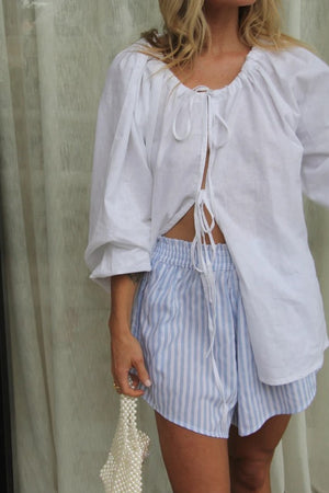 Tie it up and adjust the neckline however you like, wear it high, low or open. The new Anya blouse from The Ease is designed to be the easiest to wear tie blouse, with billowing sleeves and gathered neckline.