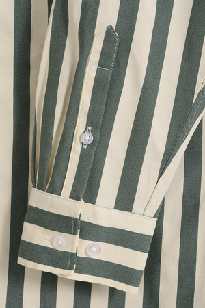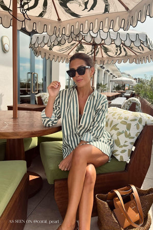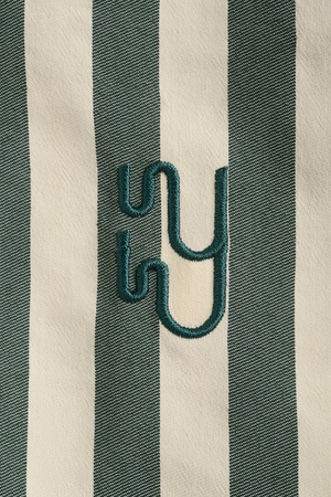 A bold green and white stripe shirt, the all-season style has a lightweight feel with a dropped back hem and oversized, boyfriend fit silhouette. Crafted from TACTEL®, an adapted form of nylon developed with next-to-skin softness and a lightweight construction. The BUOY shirt also features the distinct YAITTE monogram. This is an oversized boyfriend shirt style, if you would like less oversized, then we suggest ordering a size smaller. Also Available in Red & Blue.