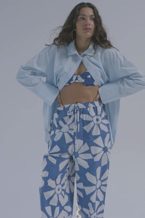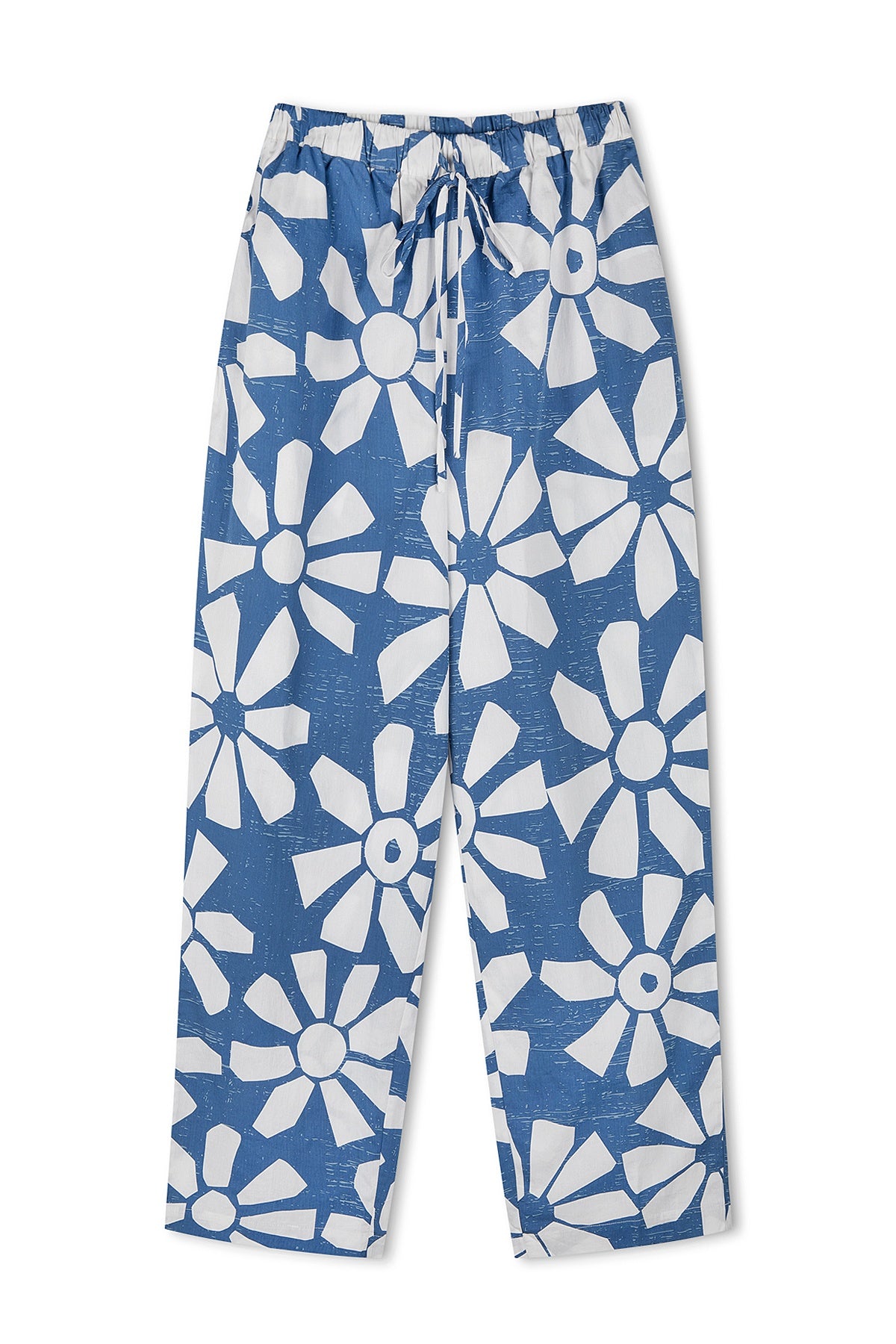The Geo Flower Cotton Pant is made from crisp poplin fabric, providing a lightweight and breathable feel. Designed with a relaxed silhouette, it features an elasticated waistband and adjustable drawcord for a comfortable, customised fit. Side seam pockets enhance practicality, making this piece both stylish and functional.