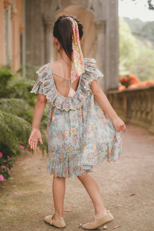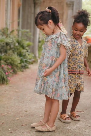 The Natiya dress with its ruffled collar and bare back, is a stunning must have for your young ones this season. Its gathers and volume invite you to dance all summer long, in the middle of hibiscus and marigold flowers.
