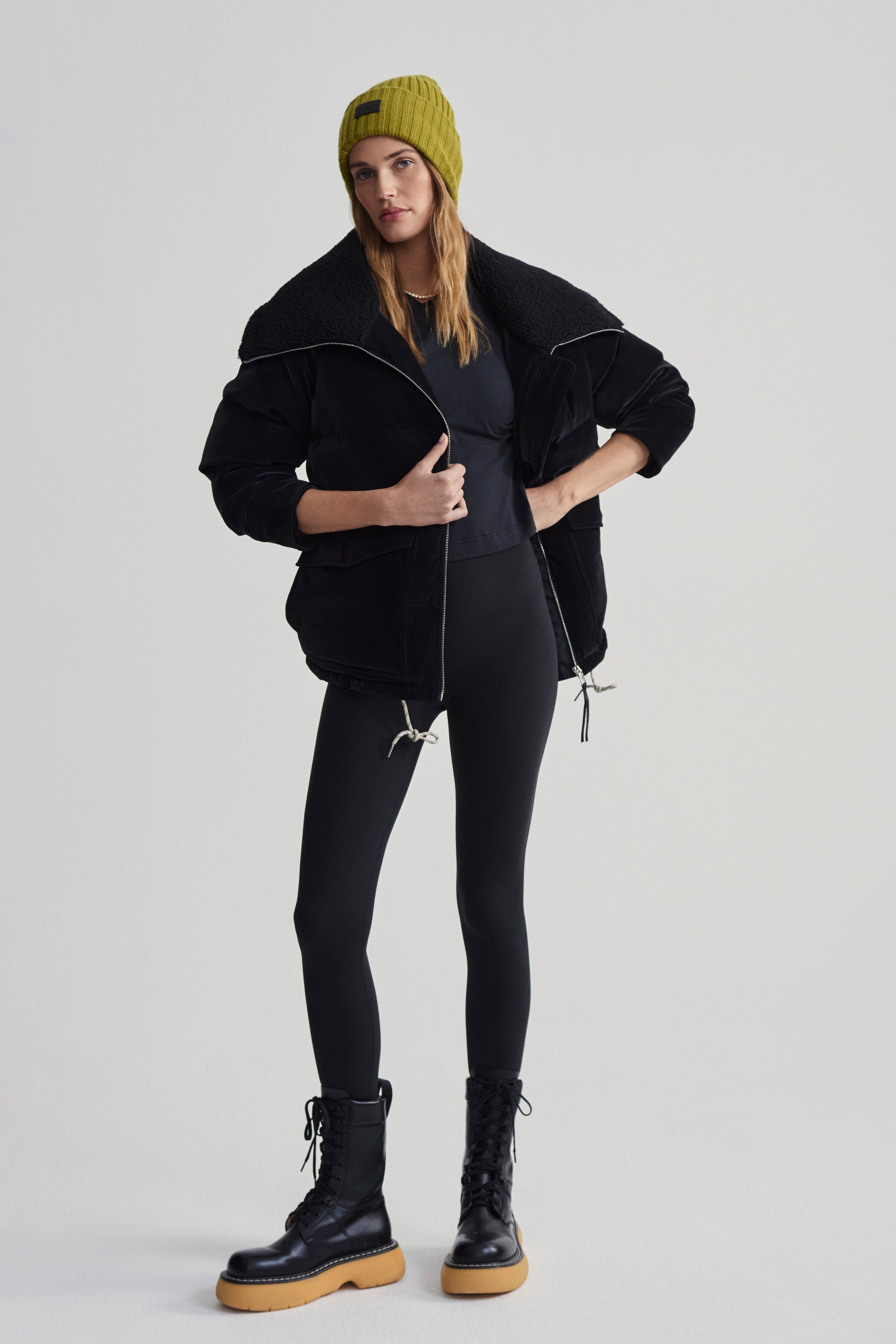 This oversized down-filled puffer is an elegant outer layer for fall and beyond.