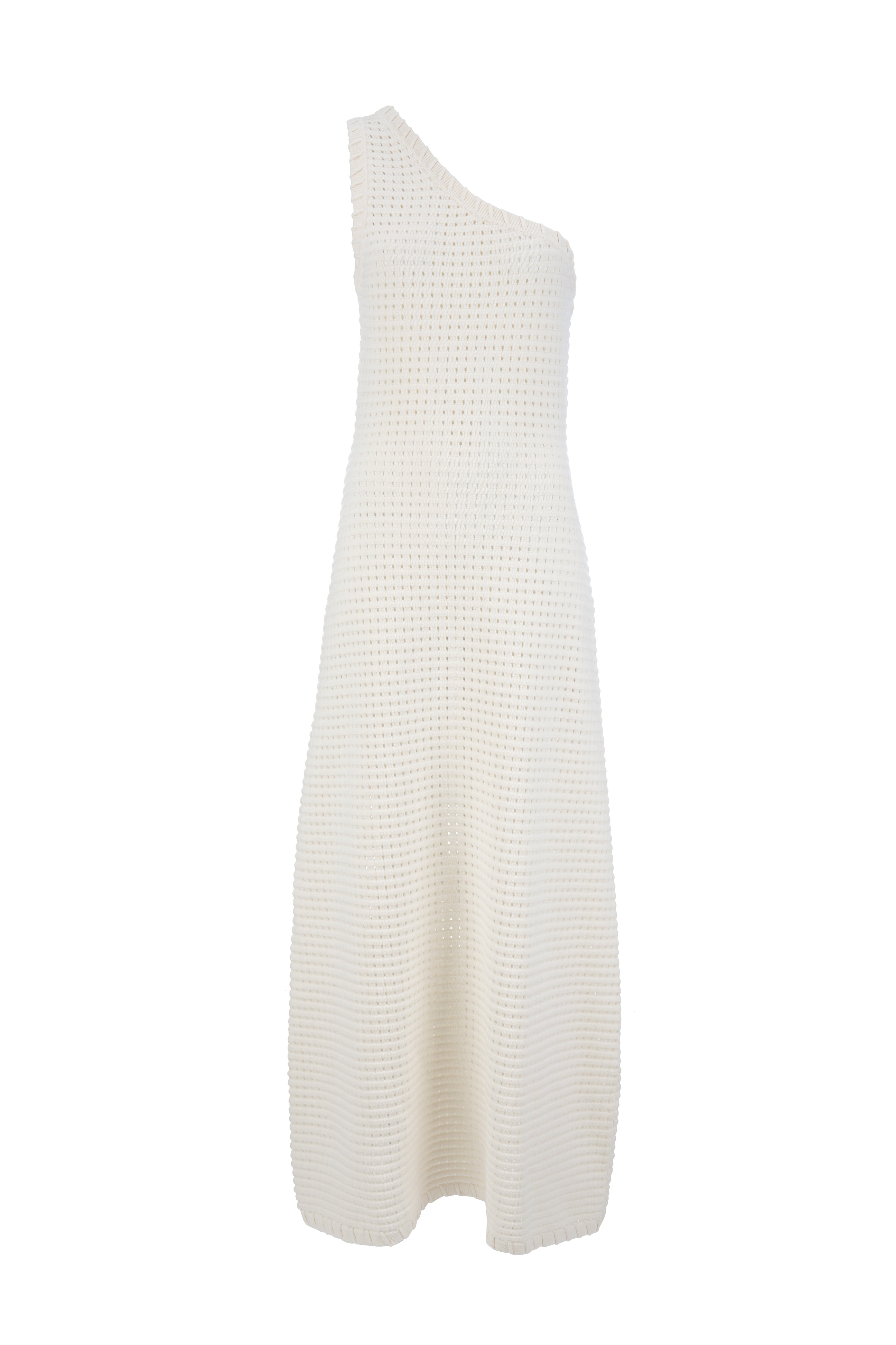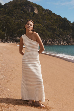 Designed with utmost attention to detail, the Chloe Knit Dress is made from an intricate punch-hole knit texture. The one shoulder silhouette, which is highlighted by a gorgeous, laced trim, makes this dress perfect for events.