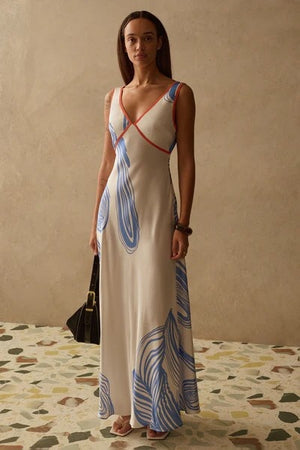 A delicately feminine dress that is both timeless and bold. Our Madeleine Dress is cut on the bias for a beautiful, figure-hugging silhouette that will never go out of style. The pop of colour adds a fun and exciting twist to such a classic cut.