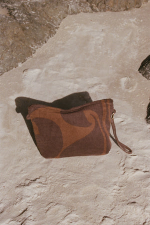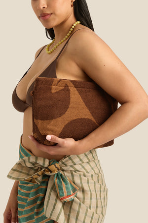 'Wave Umber' is a retro geometric design of rolling waves formed by abstract interlocking ’S’ shapes.